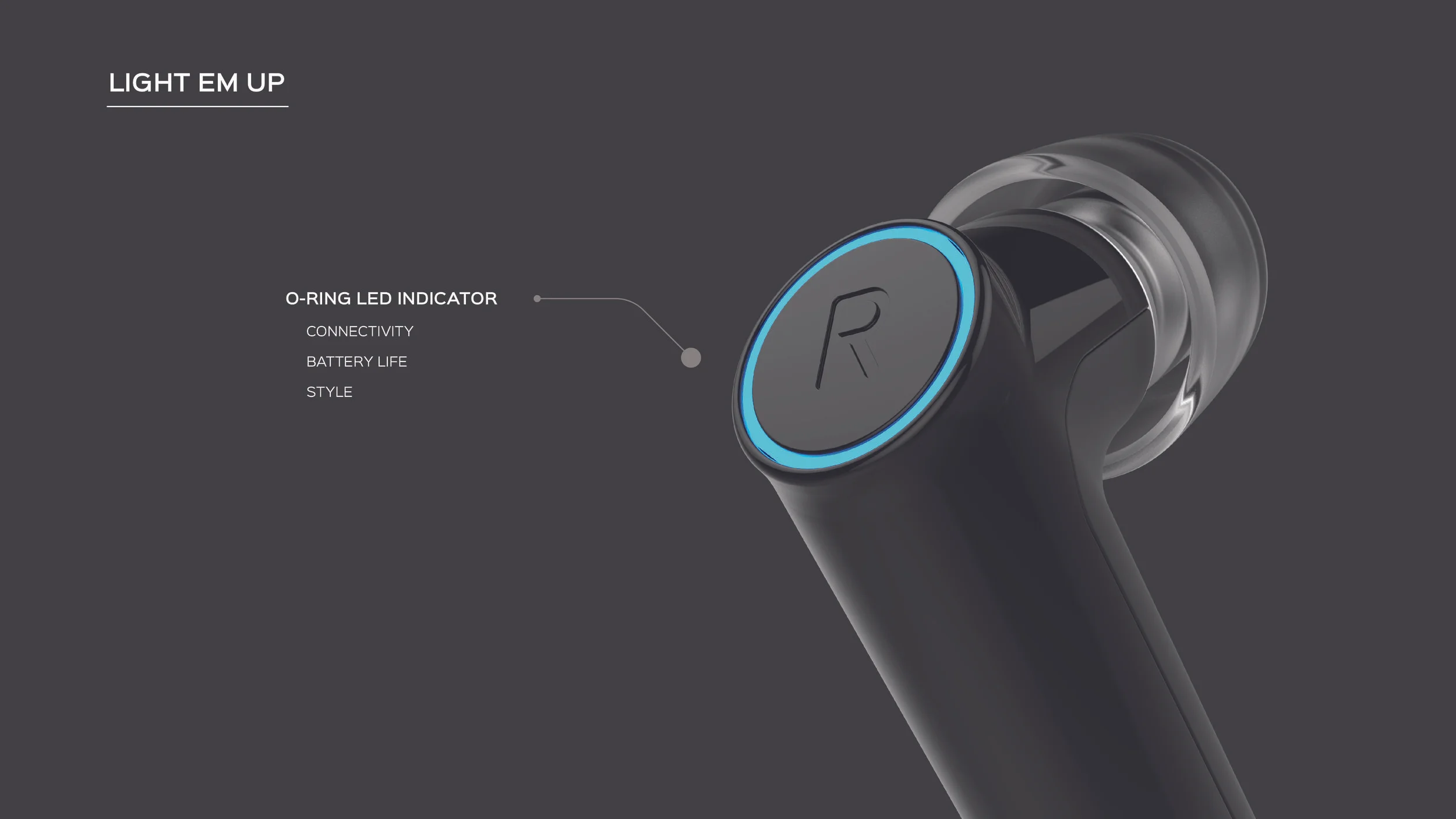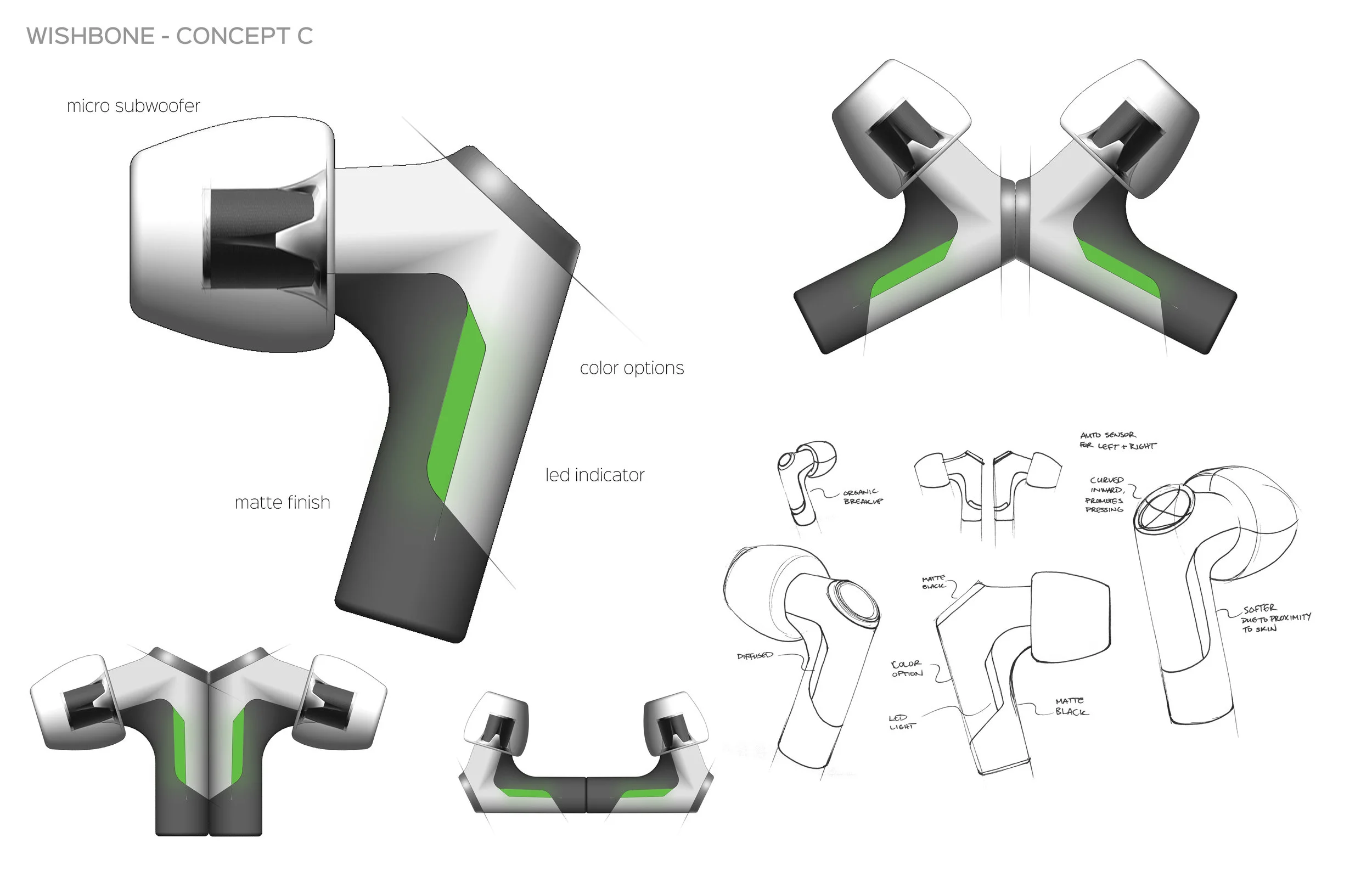 I found an eloquent design language for when the earbuds are both together and separated.